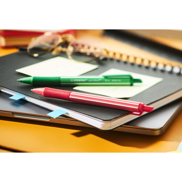 Vďaka svojmu farebnému dizajnu je STABILO pointball colorful sviežim a moderným doplnkom každého stola. Farebne odlíšené telo guľôčkového pera zobrazuje farbu atramentu - už žiadne hádanie, akou farbou píše. Je to skvelý nástroj na rýchle písanie, pretože kvalitný atrament v guľôčkovom pere zaisťuje hladký a rovnomerný tok so šírkou čiary 0,5 mm. Mäkká zóna úchopu poskytuje pohodlné uchopenie aj pri dlhšom písaní. Okrem toho má výrobok certifikát ISCC PLUS, pretože 87 % plastov na biologickej báze použitých na výrobu tela pera pochádza z udržateľných zdrojov (hmotnostná bilancia). Vďaka guľôčkovej náplni STABILO je možné farebnú guľôčku STABILO ľahko dopĺňať znova a znova.