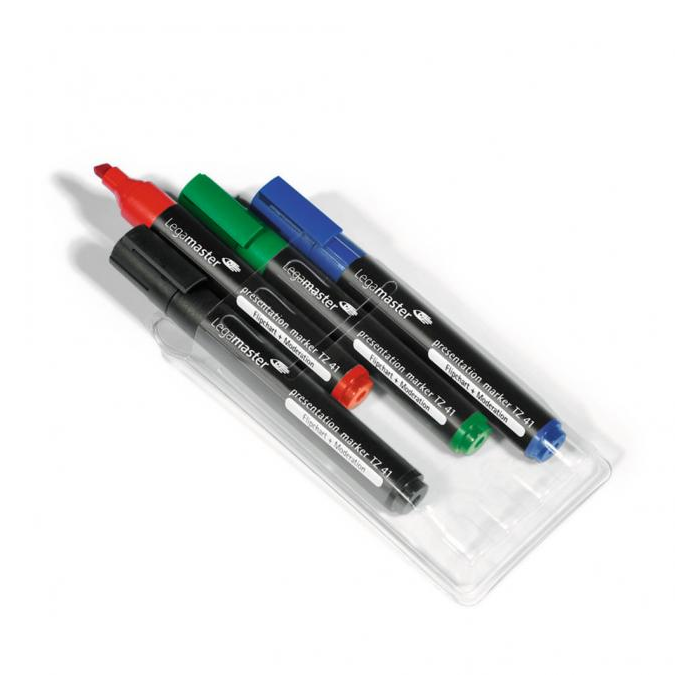 Popisovače pre flipchartové a iné typy papierov. Nearomatický atrament, ktorý nepresakuje na druhú stranu papiera. Zrezaný hrot pre zvýraznené písmo, šírka stopy 2-5 mm. Sada 4 farieb. Dopĺňateľné náhradným atramentom s obsahom 100 ml obj. kód LM1558.