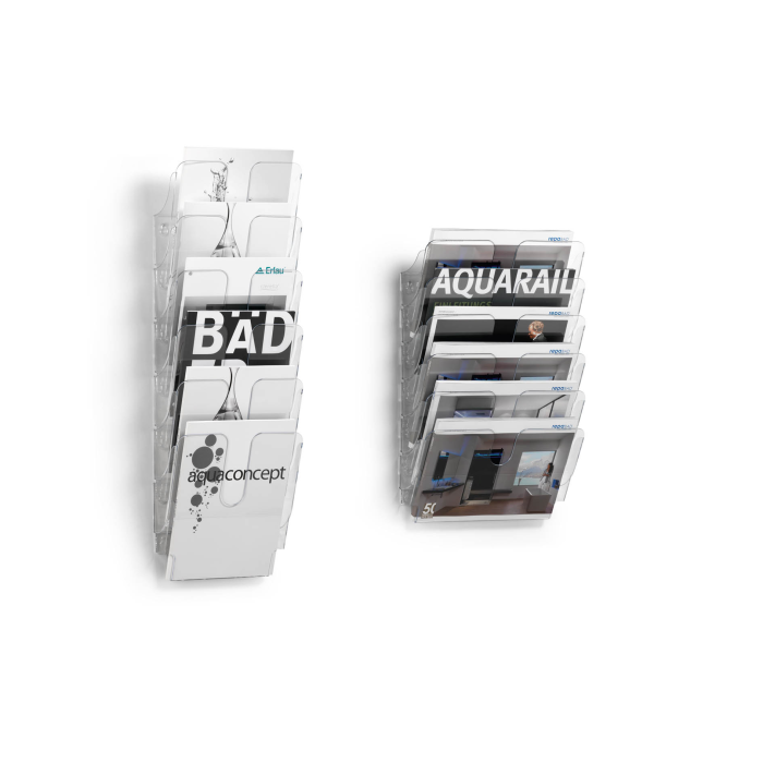- moderný dizajn - pre dokumenty formátu A4 - pozostáva z modulu šiestich držiakov - ideálne pre recepcie, showroomy, salóniky a výstavy - šírka jedného priečinka: 23 mm