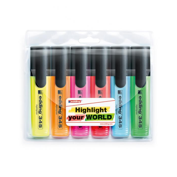 Popisovač so zrezaným hrotom so šírkou stopy 2 - 5 mm. Pre zvýraznenie textových pasáží, výstupov z atramentových tlačiarní, poznámok a pod. Vodovzdorný pigmentový atrament so silne svietivými a intenzívnymi farbami. Vhodný pre InkJet - pri zvýrazňovaní textov tlačených na atramentových tlačiarňach sa atrament nerozpíja. Dopĺňateľný atramentom HTK 25. Sada 6 farieb. Farba: 6 farieb Šírka stopy: 2-5 mm