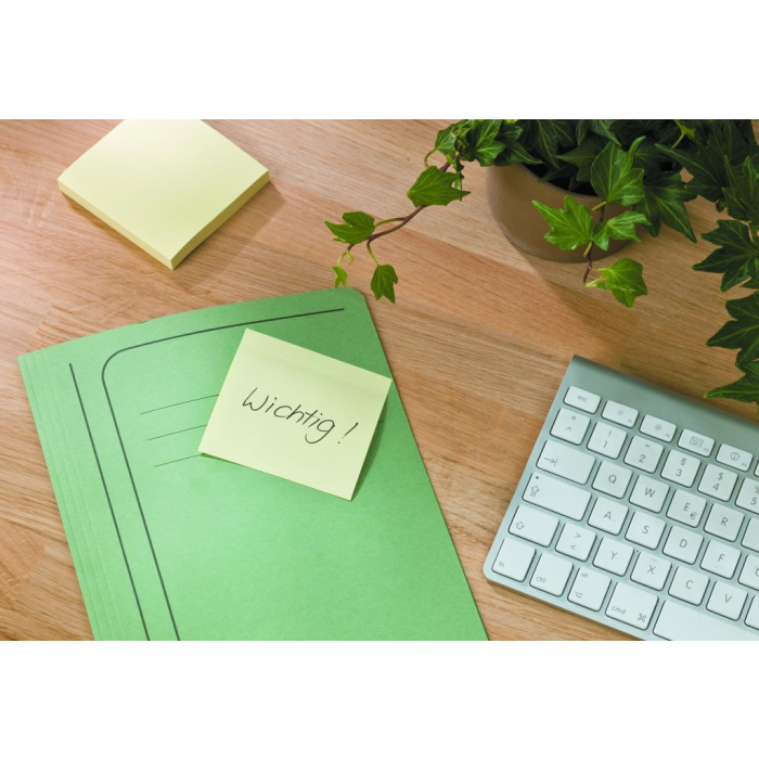 Bločky zo 100 % recyklovaných papierových vlákien v nebielenom a nefarbenom obale. Ekologické a ekonomické zásobníky so 6 bločkami. Pre jednoduchšiu recykláciu používajte na písanie iba jednu farbu. Farby pastelové.