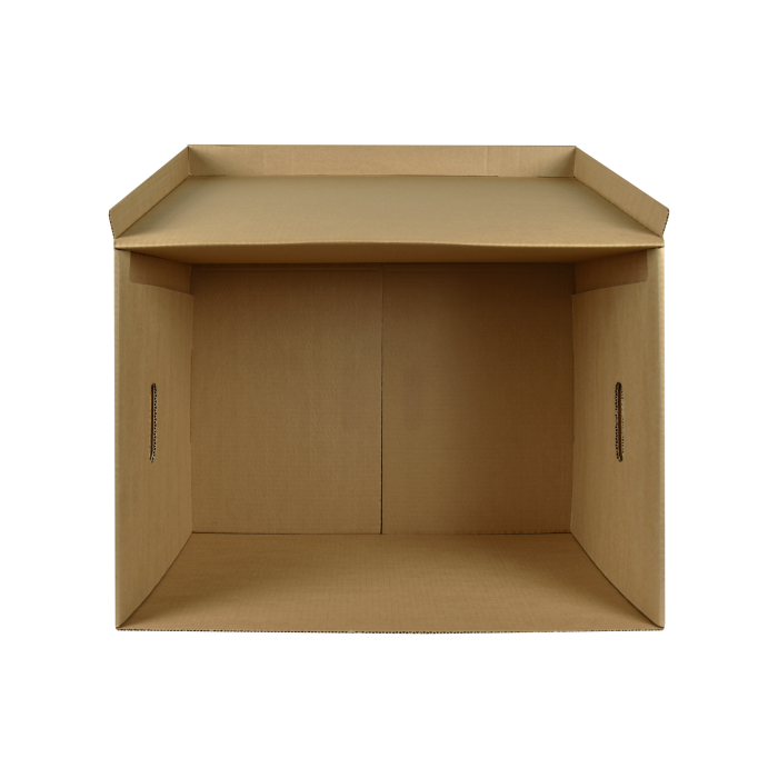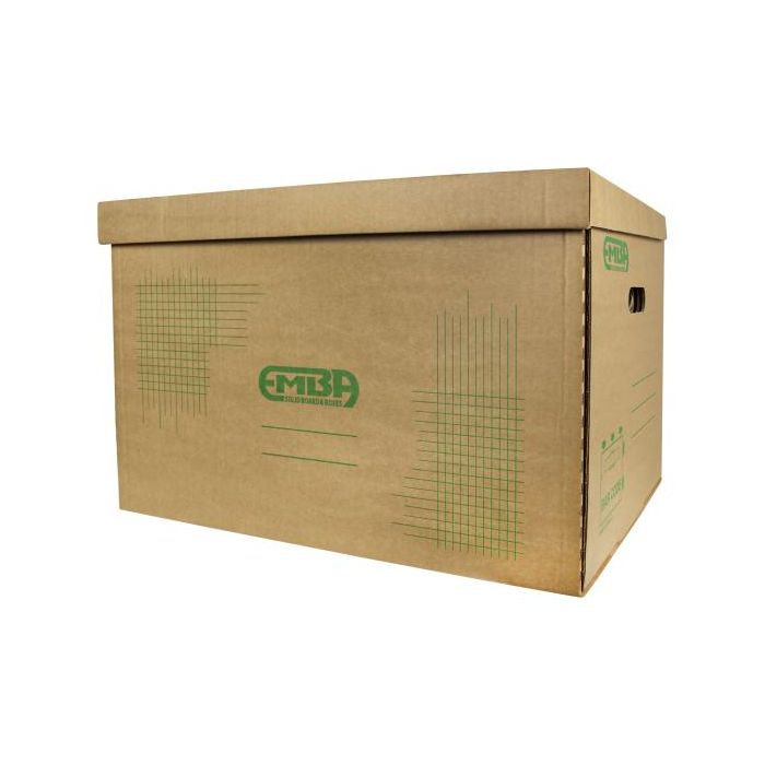 Sťahovací hnedý box s kvalitnou zelenou sieťotlačou vyrobený z recyklovateľnej hnedej vlnitej lepenky. Konštrukčné riešenie krabice umožňuje rýchly prístup k uloženým dokumentom alebo predmetom. Konštrukcia je spevnená zosilnením bočných stien. Maximálna nosnosť 100 kg. Rozmery 610 × 430 × 380 mm.