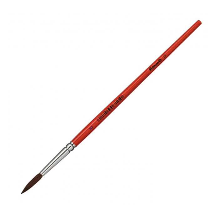 Guľatý vlasový štetec Pelikan 23, štandarndá kvalita, s hliníkovým úchytom, oranžová lakovaná rukoväť, hrúbka stopy uvedená ako číslo.