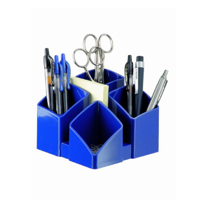 Stojan so 4 sekciami na písacie potreby a ďalšie kancelárske drobnosti. Spodná strana s protišmykovou úpravou. Materiál kvalitný plast vysokého lesku. Pri spojení 2 alebo 4 stojanov dosiahnete zaujímový moderný efekt. Rozmery 125 × 125 × 100 mm. Stojan dodávaný prázdny.