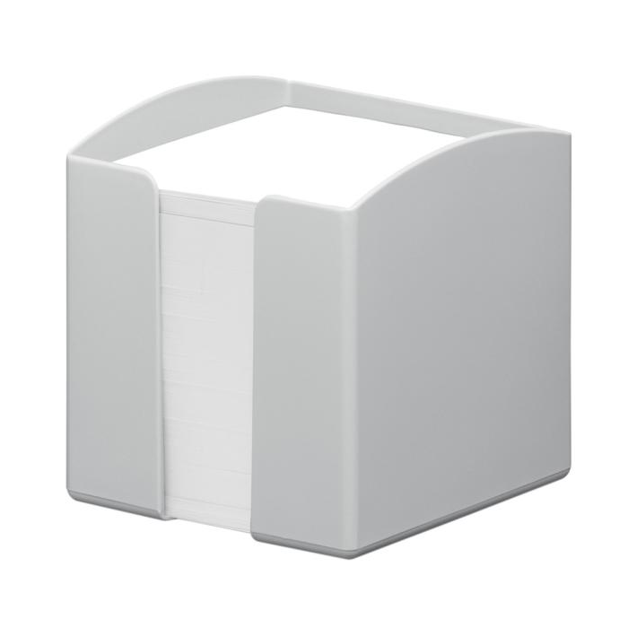 Stojan na poznámkový blok z recyklovaných plastov v kvalite Blue Angel. S 800 lístkami recyklovaného papiera v kvalite Blue Angel, veľkosť 93 x 93 mm. Rozmery: 100 x 105 x 100 mm (Š x V x H). Farba sivá.