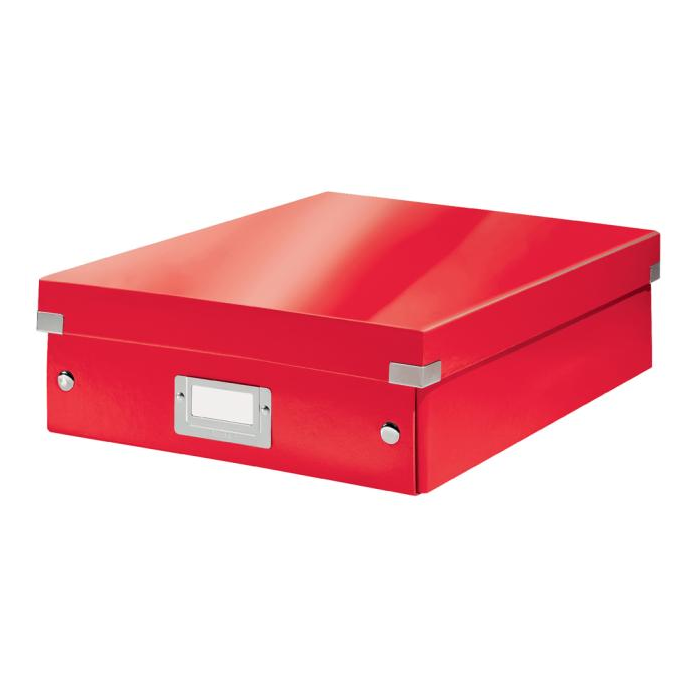Archivačná krabica s vekom vo výrazných farbách WOW. Pevné a stabilné prevedenie. Materiál silný drevnatý kartón potiahnutý laminom. Rámik na štítok, vystužené rohy krabice a spojovacie cvoky vyrobené z kovu. Inteligentná skladacia konštrukcia - rýchle a jednoduché zloženie bez nutnosti použitia skrutiek a opätovné rozloženie, keď krabice práve nepoužívate. Dodávané rozložené. Väčšie balenie 6 ks. Krabica na usporiadanie káblov, nabíjačiek, slúchadiel, fotografi í a ďalších drobností. Na vylepšenie usporiadania obsahu slúži vnútorný systém priehradiek, s ktorým môžete rozdeliť krabicu na 2 alebo 3 časti a zabrániť tak miešaniu obsahov v jednotlivých častiach. Veľkosť M. Robustné kovové úchyty na jednoduchý prenos. Rozmery 280 × 100 × 370 mm.