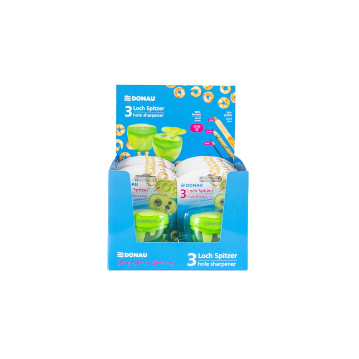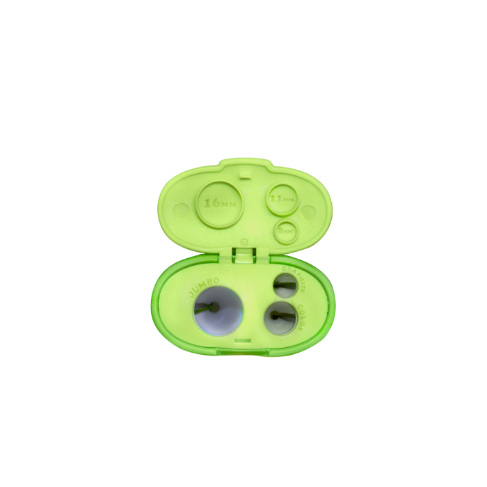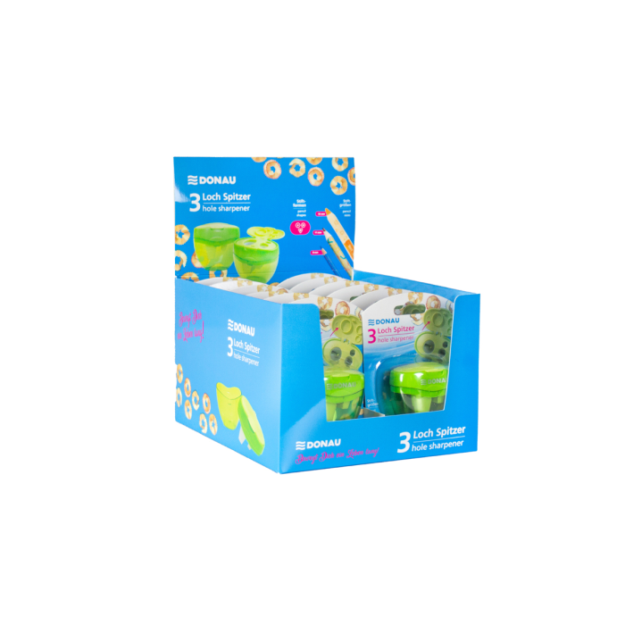 Praktické strúhadlo na konzervy s 3 otvormi a viečkom - ideálne na ceruzky, farebné ceruzky a najmä na extra hrubé farebné ceruzky 3 v 1. Vhodné pre ceruzky s priemerom od 8 mm do 16 mm, kompatibilné s okrúhlymi, šesťuholníkovými a trojuholníkovými ceruzkami. Robustné plastové puzdro v sviežej zelenej farbe zaisťuje odolnosť a pohodlnú manipuláciu. Nevymeniteľná čepeľ zaručuje konzistentné ostrenie, zatiaľ čo integrované viečko zabraňuje unikaniu triesok a udržiava veci v poriadku. Strúhadlo sa predáva jednotlivo v blistrovom balení s euro otvorom na zavesenie, ideálne na vystavenie v maloobchode. Pre väčšie množstvá je k dispozícii aj v balení po 12 kusoch v malom vystavení - ideálne na predaj a skladovanie v školách, kanceláriách alebo remeselníckych priestoroch.