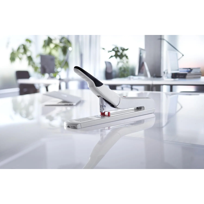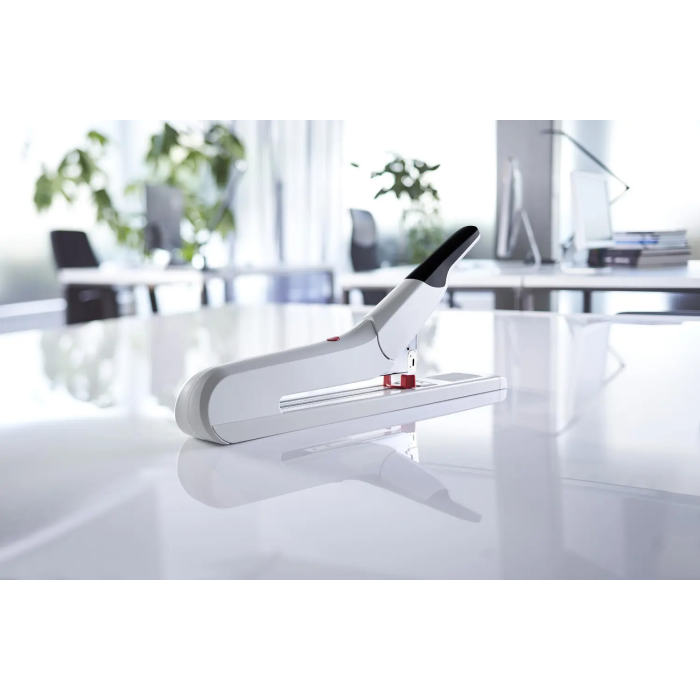 Silná veľkokapacitná zošívačka s kapacitou do 170 listov 80 g papiera. Kovový zásobník s dvojitým vedením spiniek. Kapacita náplne 100 spiniek 23/8 až 23/20SUPER. Hĺbka zošívania 25 cm. Hmotnosť cca 2400 g. Záruka 25 rokov. Farba: ivá Kapacita listov: 20 - 170 Hĺbka zošívania: 25 cm