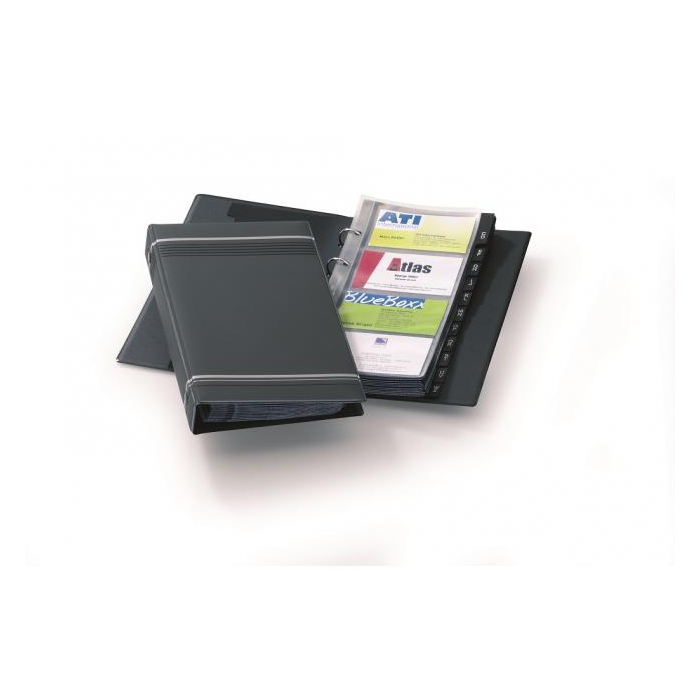 Vizitkár prenosný 4-krúžkový na 200 vizitiek VISIFIX čierny