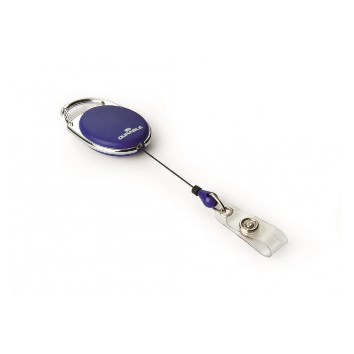 Štýlový oválny vysúvací kotúč s možnosťou vysunutia do 80 cm a kovovým klipom na rubovej strane. Vhodný na uchytenie všetkých visačiek značky DURABLE s perforáciou. Balenie 10 ks. Farba: modrá