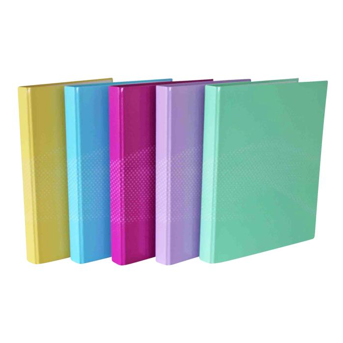 Krúžkový zakladač, 5 rôznych pastelových farieb, pre formát DIN A4, 2 krúžky, priemer krúžku 25 mm, laminovaný lesklý papierový povrch