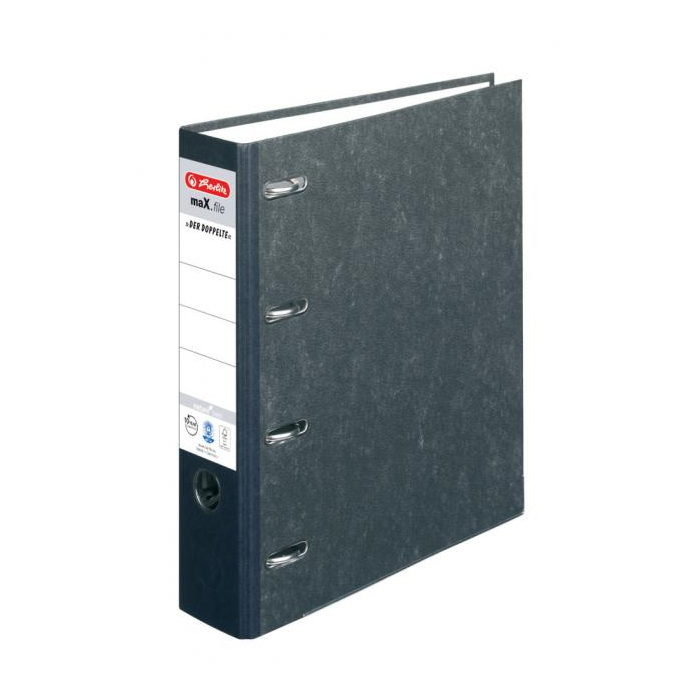 Pákový mramorový zakladač maX.file nature A4. Šírka chrbta 8cm. Dvojitá páková mechanika, čierna bočná strana, lepený chrbtový štítok. Otvor na zadnej strane a rado krúžok pre lepšiu manipuláciu, kovová lišta. Farba čierna.Väčšie balenie 20 ks.