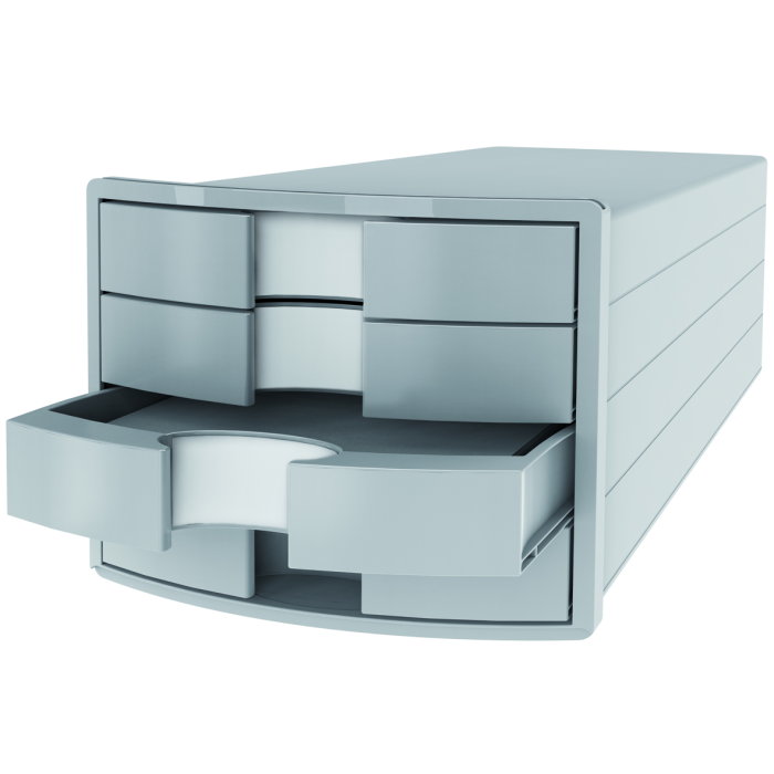 Box so štyrmi zatvorenými zásuvkami v tvare počítačového monitora.Rozmery (š × v × h) 294 × 235 × 368 mm. Farba boxu/zásuvky: sivá/sivá Rozmery: 294x235x368 mm