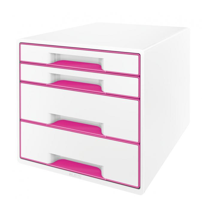 Zásuvkový box Leitz WOW so 4 zásuvkami ružový