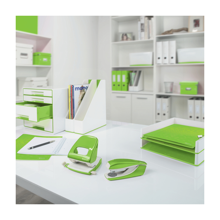 Malá zošívačka v moderných žiarivých farbách ideálna nielen do kancelárie, ale aj domov alebo na cesty. Vždy perfektné zošitie vďaka patentovanej technológii DIT. V kombinácii so spinkami Leitz Power Performance P2 (č. 10) dosiahnete vždy jednoduché a správne zošitie.Kapacita 10 hárkov. Vrecková zošívačka. Patentovaná technológia DIT na spoľahlivé zošívanie. Balenie v škatuľke, vrátane spiniek. Otvorením ramena o 180° je možné použiť nástenkové zošívanie (takrovanie). Farba zelená.