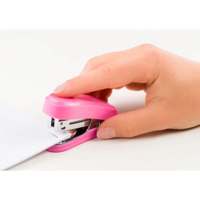 Malá kancelárska zošívačka Novus MINI s jednoduchým vedením spiniek a integrovanou kovovou rozošívačkou. Vhodné spinky 24/ 6 a 26/ 6. Hĺbka zošívania 2,5 cm, kapacita zošívania 12 listov papiera. Dodávaná s 320 ks spiniek 24/ 6 v blistrovom balení.